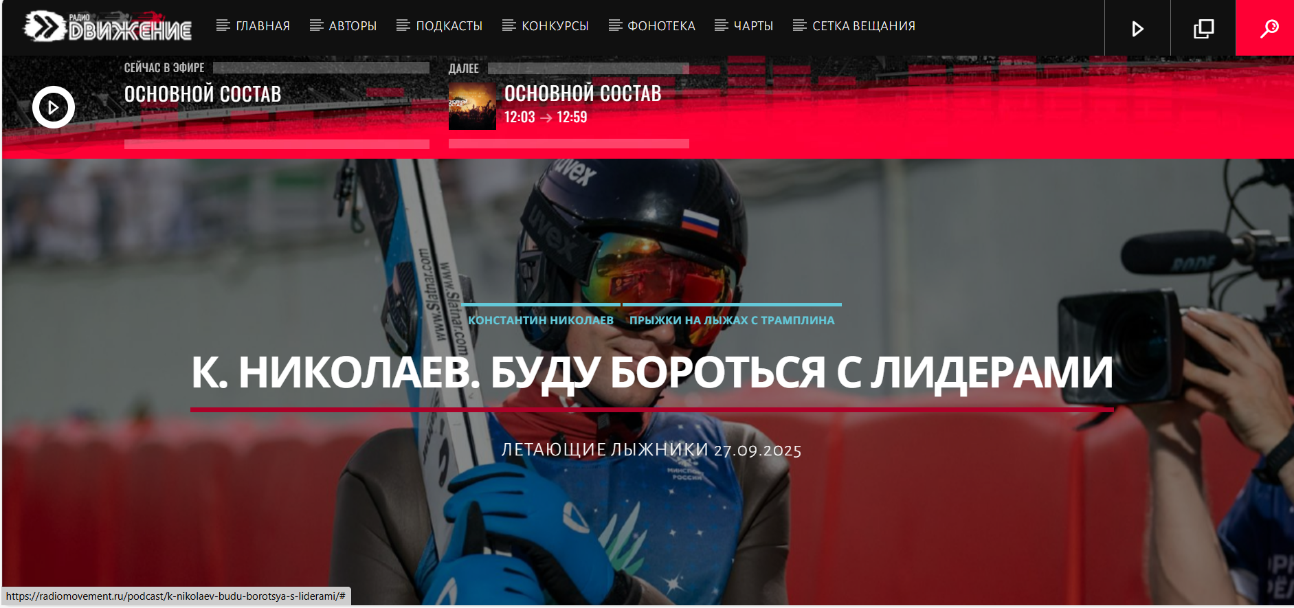 Новые подкасты спортивного радио "Движение" - интервью с членом сборной России по прыжкам на лыжах с трамплина Константином Николаевым.